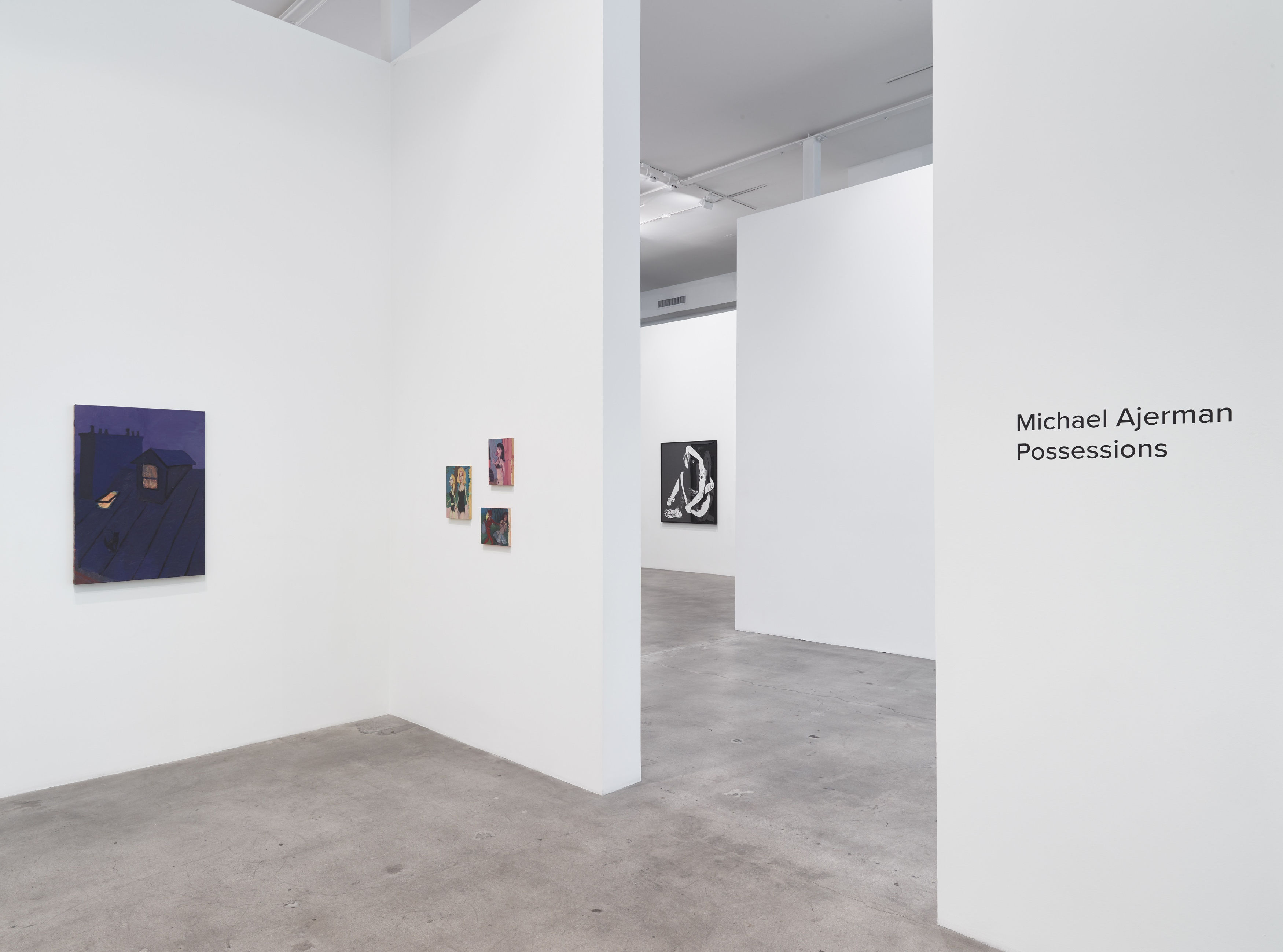 Ajerman’s Possessions marks the first exhibition in Los Angeles for the London-based artist. His paintings depict moments of intimacy and domesticity, and feature narratives as familiar and recognizable as Pinocchio and Tinkerbell. In each painting, however — though the color palette is wide and rich — darker energies are indeed amidst, as if something seethes unseen beneath the surface. Yet these works also offer a sense of humor in the very depiction of the ludicrous and lovely nature of life itself.